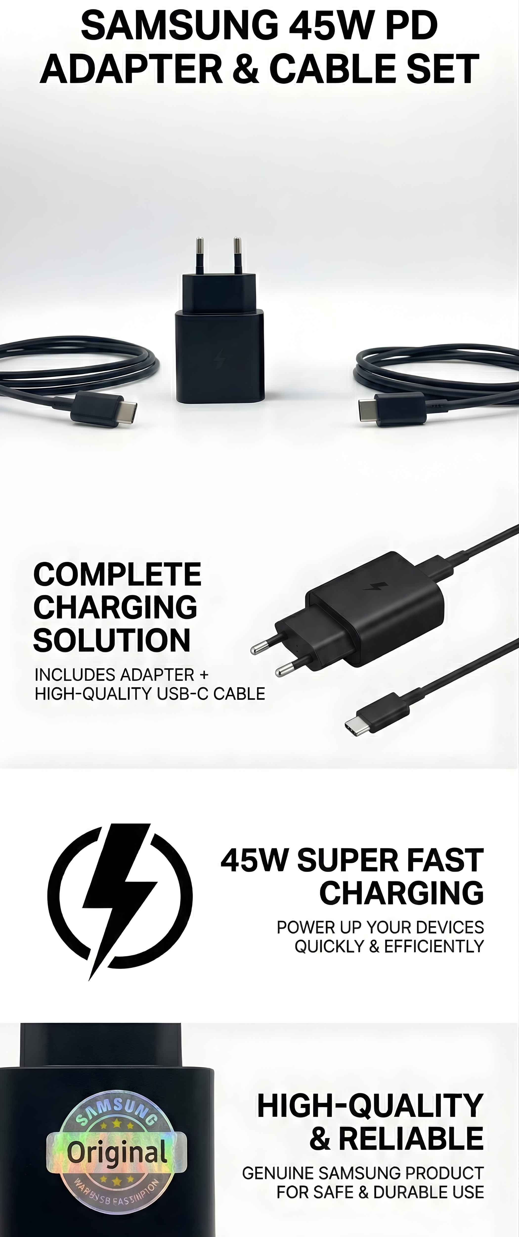 Samsung 45w Complete Charger with Cable Super Fast Charging.
